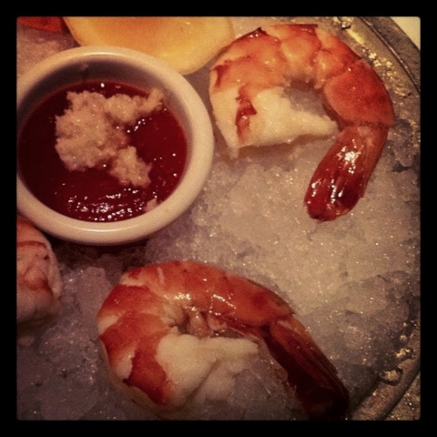 While I started the meal off with an awesome cheese plate, Kyle ordered the shrimp cocktail, and behold -- the sweetest, largest shrimp you've ever laid eyes on.