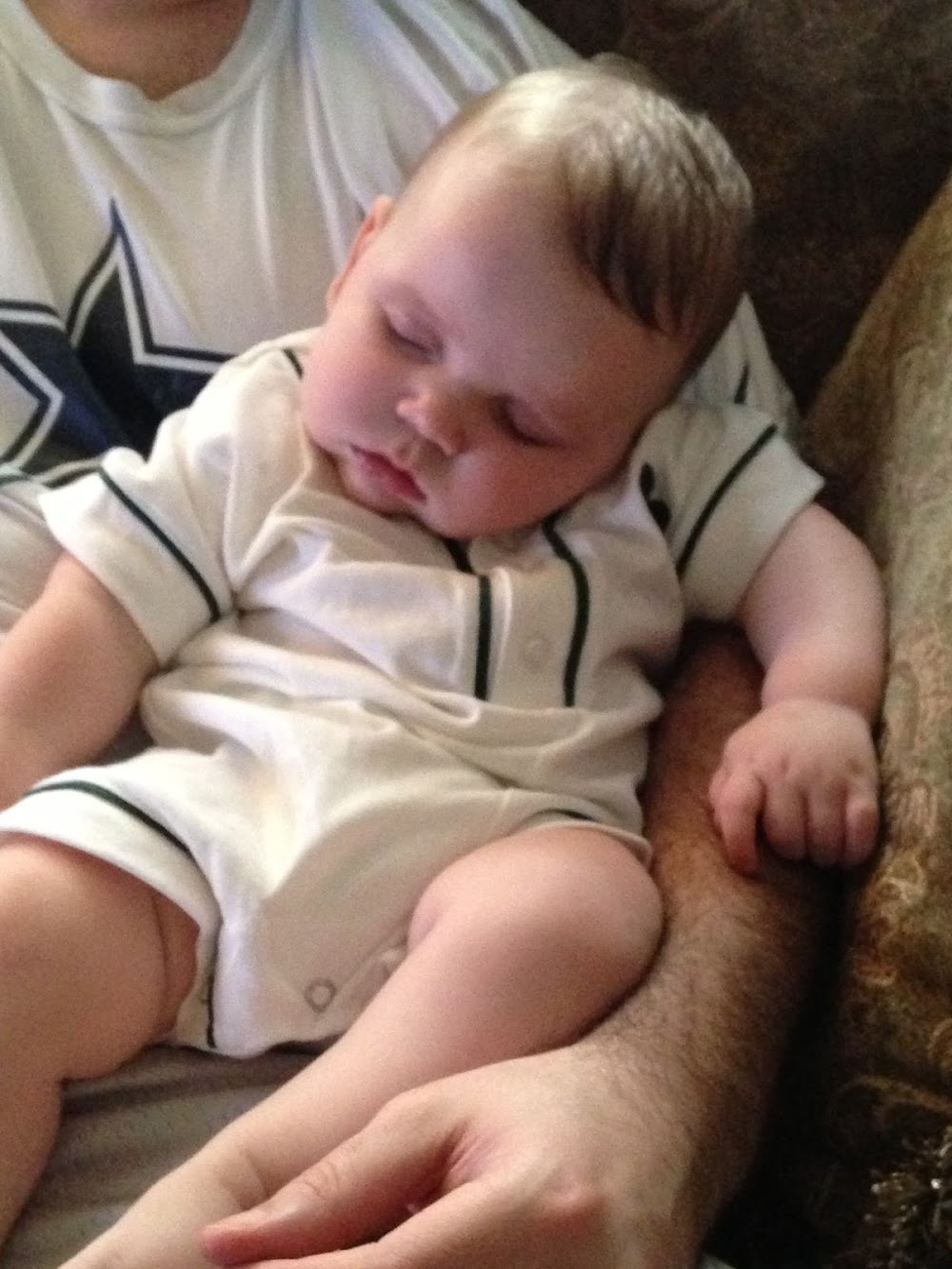 He is a very happy baby -- joyful, really. I worried about this so much when he was a newborn, crying and/or screaming probably 8 hours every day. I didn't even want to admit how miserable things were, on the blog or to anyone other than Kyle. I wept in the shower every single day for probably three months, because he cried so much and no one could tell me how to make it better. But after we switched him to that blessed $30-per-can hypoallergenic formula, it was like the heavens opened up. He laughs, he plays, he snuggles, he coos. So this is what bonding with and loving on your baby is supposed to feel like. It is pure and simple bliss.